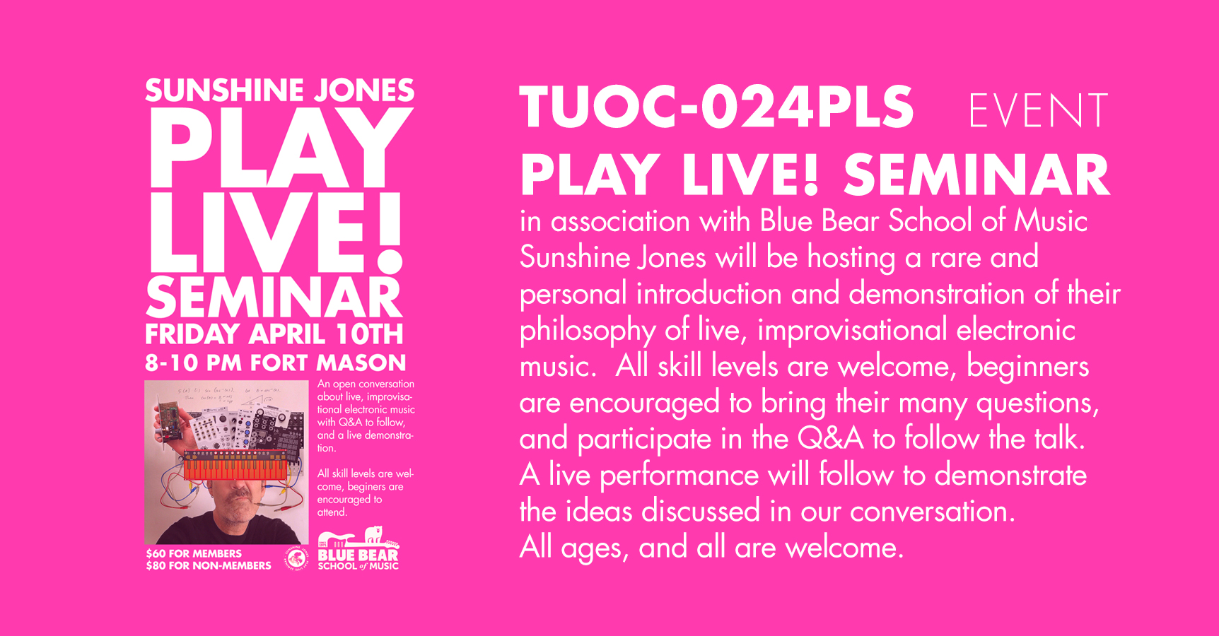 On April 10th we will be hosting a Play Live! Seminar at Ft. Mason in association with Blue Bear Scool of Music.